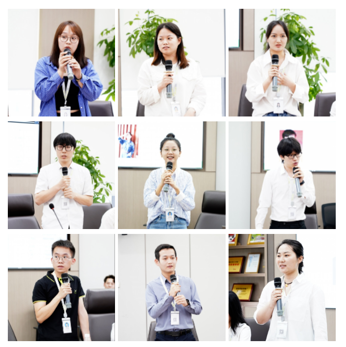 新人小伙伴們圍繞個人性格、家鄉(xiāng)特色、角色轉(zhuǎn)變、企業(yè)文化等幾個方面分享自己的感悟,積極熱情,暢所欲言。