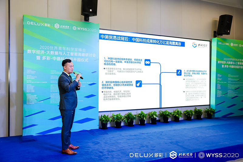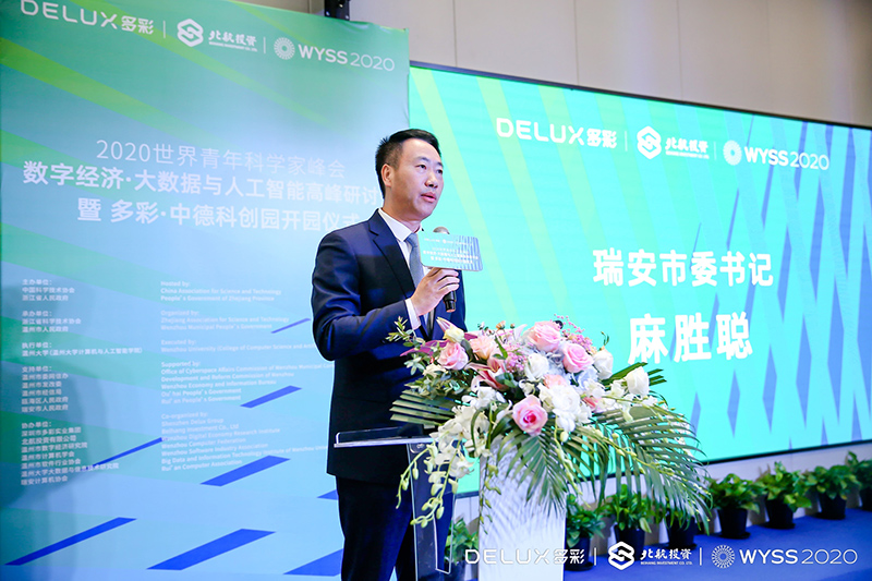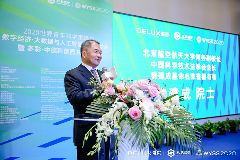 10月18日下午,2020世界青年科學家峰會數字經濟·大數據與人工智能高峰研討會(以下簡稱“研討會”)暨多彩·中德科創園開園儀式在溫州成功舉辦。北京航空航天大學常務副校長、中國科學技術法學會會長、房建成星命名榮譽擁有者房建成院士,第十屆全國人大常委會委員、北航投資首席科學家、劉大響院士,國際宇航聯合會“名人堂”獎項獲得者、運送楊利偉成功入太空的神州飛船總設計師戚發軔院士,北航校友總會名譽顧問、中國載人航天工程原副總設計師、國際宇航科學院院士沈力平少將,溫州大學黨委書記謝樹華,中共浙江省委宣傳部副部長趙磊,浙江省科技廳副廳長曹新安,浙江廣電集團副總裁楊勇,中國日報社總編室副主任、地方部主任徐小丹,中共瑞安市委書記麻勝聰,瑞安市委常委施巨耀,瑞安市委常委、宣傳部長葉艷,溫州浙南沿海先進裝備產業集聚區瑞安閣巷分區管理委員會(浙江省瑞安經濟開發區管理委員會)主任林朝進,瑞安市政協副主席、瑞安中學校長陳良明,溫州大學副校長、黨委委員蔡曙光,溫州大學計算機與人工智能學院院長張笑欽,溫州大學計算機與人工智能學院書記全力,浙江大灣區實業有限公司總經理朱峰,深圳比特微電子科技有限公司創始人、董事長楊作興,航空工業集團寶利鑫新能源開發有限公司董事長梁田,北航校友總會副秘書長黃瑞勇,北航寧波校友會會長、寧波信遠工業集團有限公司董事長袁奕琳,北航企業家溫州校友會會長、溫州古特建筑裝飾工程有限公司董事長金涌,溫州機場集團副總裁廖錫峰,北航浙江校友會執行會長、世輝照明董事長宋丹楓,浙江校友會執行會長兼秘書長、中國航空技術(杭州)有限公司總經理助理張月芳,北航企業家俱樂部會長、深圳市坪山區新聯會會長、深圳市多彩實業集團董事長、北航投資有限公司董事長夏煒,北航投資有限公司總經理王劍飛等領導嘉賓出席本次活動。在現場嘉賓的見證下,多彩·中德科創園正式開園。