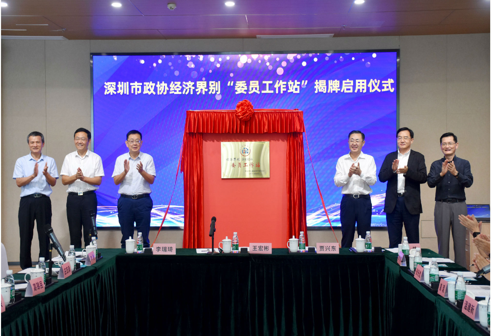 王宏彬副主席、賈興東主任、李瑞琦主任、李勇書記、莊志勇副主任、夏煒董事長共同為“經濟界別多彩硅谷委員工作站”揭牌。經濟界別首個“委員工作站”設在多彩硅谷(深圳),設有集多功能廳、會議室、商務休閑區于一體的多功能活動區域,配備以學習書籍、政協制度等資料,旨在服務界別委員開展履職工作、學習交流、聯系群眾等活動。