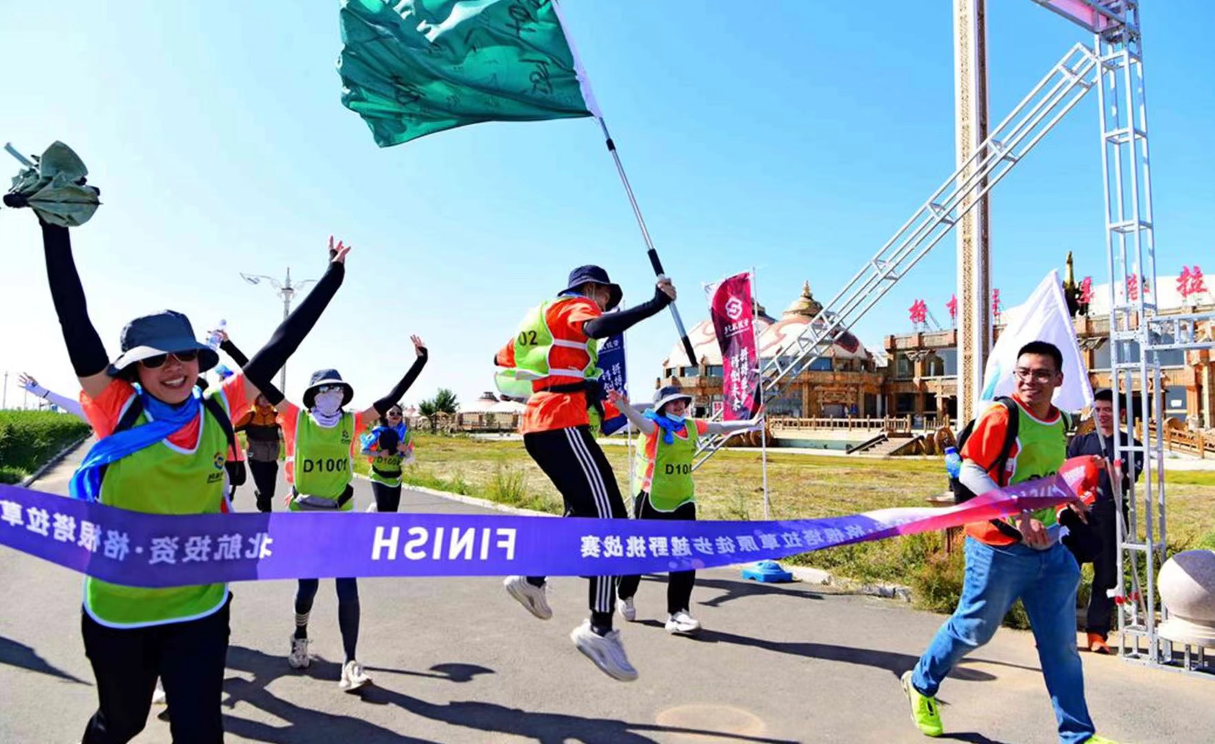 一聲槍響,15km草原越野挑戰賽正式開始,大家向著茫茫無際的草原出發,成為草原上一道亮眼的風景線。所有人頭頂烈日,腳踏崎嶇不平的土地,向著終點前進。途中,小組成員互幫互助,團結合作完成闖關游戲,經歷身體與精神的雙重極限考驗后,攜手到達終點。