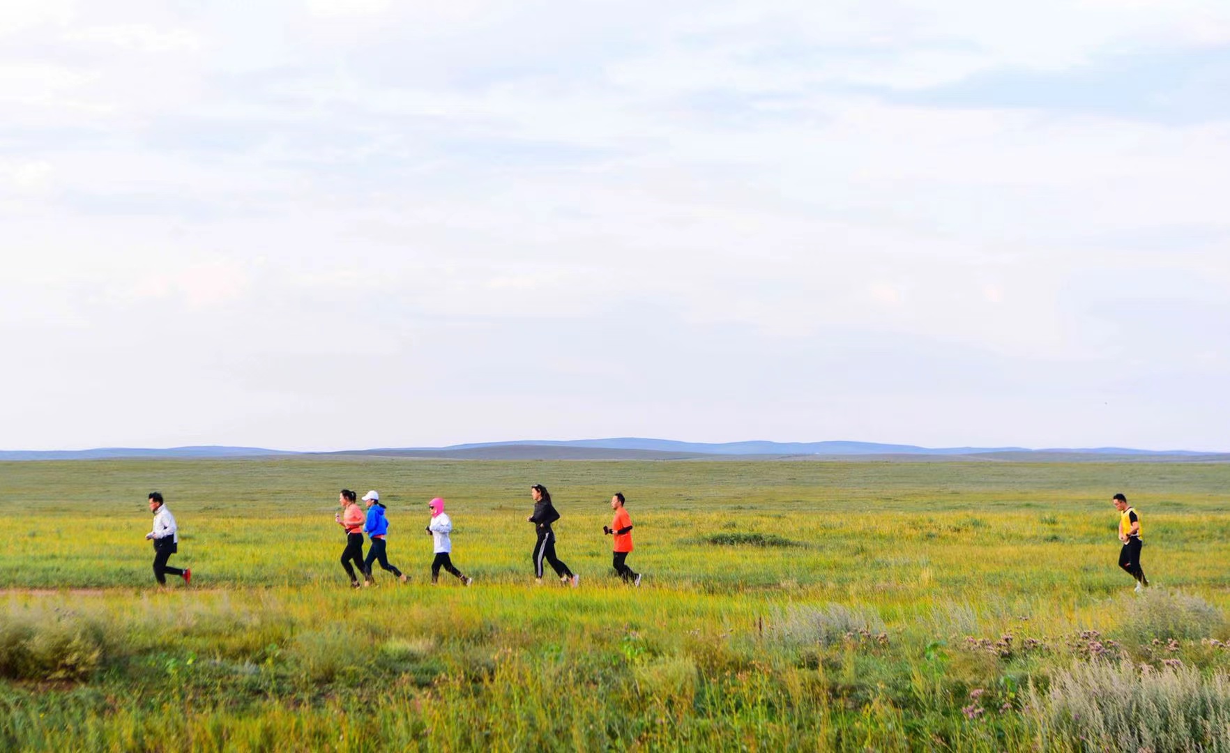 次日凌晨5點,大家來到湖邊,靜待朝陽的升起。之后,8km草原慢跑挑戰賽正式開始。大家感受著草原清風,欣賞著刺透云層的陽光,看著近處成群的牛羊,爬過起伏的坡道,翻過崎嶇的草甸,一直堅持。