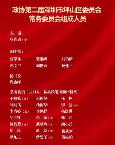 2021年11月18日,政協(xié)第二屆深圳市坪山區(qū)委員會(huì)第一次會(huì)議閉幕。在閉幕大會(huì)前舉行的選舉大會(huì)上,深圳市政協(xié)委員、坪山區(qū)新的社會(huì)階層人士聯(lián)合會(huì)會(huì)長(zhǎng)、深圳市多彩實(shí)業(yè)集團(tuán)董事長(zhǎng)夏煒當(dāng)選為深圳市坪山區(qū)二屆政協(xié)常委。